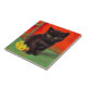 Carrelage avec un chat noir dans le style Van Gogh! Ce beau chaton est adorablement installé à côté des tournesols sur un sol vert contre un mur rouge. Un joli cadeau pour les collectionneurs d'art amoureux de les chats et hollandais !