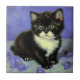 Carrelage avec un chaton tuxedo dans le style de Vincent van Gogh! Cette jolie petite pose avec des fleurs violettes. Un superbe cadeau pour les collectionneurs d'art amoureux des chats et néerlandais !