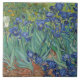 Ce beau produit est inspiré par Irises peint par Vincent van Gogh en 1889. L'image est ornée d'iris bleus aux tiges vertes et de feuilles aux pointes pointues plantées dans la terre brune-rouge.