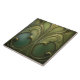 Ce carrelage en céramique séduisant est un chef-d'oeuvre de style Art Nouveau, avec un éventail fascinant de tourbillons et de boucles verdoyants. Le design complexe présente une palette de vert foncé de la forêt, d'oliviers et d'olives, et des touches d'or, englobant les motifs naturalistes qui sont quintessence du mouvement Art Nouveau. Bien que le carrelage semble avoir un relief texturé, il est en fait fini avec une surface lisse et imprimée, ce qui en fait une pièce d'art fonctionnelle pour toute maison ou bureau. Les courbes gracieuses et les formes élégantes en font une pièce de déclaration idéale, apportant une touche luxuriante et organique à votre décor.