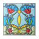 Carreau Verre souillé de quatre tulipes rouges