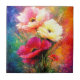 This vibrant ceramic tile showcases expressive impressionist poppy flowers painted in bold reds, pinks, yellows, and whites against a richly textured, multicolored background. Thick, dynamic brushstrokes create depth and movement, giving the artwork a lively, hand-painted feel. Ideal as a decorative accent, backsplash insert, or standalone art tile, this design brings warmth, color, and artistic elegance to kitchens, bathrooms, and creative spaces.
