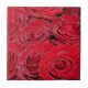 Vibrant, close up photograph of a bunch of red roses on home decor and furnishings.