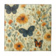 Elegant seamless pattern ceramic tile featuring delicate butterflies, golden orange wildflowers, and soft botanical details on a muted neutral background. Inspired by vintage nature illustrations, this dreamy design blends warm earthy tones with whimsical garden charm. Ideal for butterfly lovers, cottagecore fans, nature enthusiasts, and those who love soft floral aesthetics.