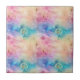 Vintage dandelion abstract pattern ceramic tile featuring delicate seed heads layered over rich teal, pink, and muted purple watercolor textures. Dreamy and artistic with an ethereal mixed-media aesthetic, this seamless design is ideal for botanical art lovers, boho style fans, nature enthusiasts, and vintage-inspired decor admirers.