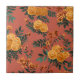 Un charmant carrelage en céramique motif d'inspiration vintage, aux tons florissants de fleurs de calendula de marigold doré, dressé contre un arrière - plan rouge marron. L'aménagement floral classique évoque l'élégance et le romantisme intemporels, idéal pour les thèmes du printemps et de l'été. Avec ses détails délicats et ses vibes vintages, ce design mêle l'esthétique botanique classique à la beauté féminine, parfaite pour des célébrations saisonnières, des collections florales intemporelles et des amateurs de fleurs nostalgiques