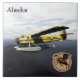 Un de Havilland Canada DH3-C Otter, portant le logo du mythique Flying Moose Aviation de Talkeetna, en vol quelque part au-dessus de l'Alaska par un jour couvert. Le texte personnalisable "Alaska" apparaît également. On y voit également le timbre en cuir porté par les pilotes de brousse de Flying Moose Aviation. Il comporte un orignal ailé superposé sur un cercle avec le texte "AVIATION DE MOOSE VOLANT", "TALKEETNA, AK" et "ESTD 1957". Le Otter, qui devait à l'origine être connu sous le nom de Castor Roi, a été conçu comme un suivi plus vaste et plus capable à Beaver très réussi. Le Beaver, désigné par de Havilland comme un "camion d'une demi-tonne", le Otter serait le "camion d'une tonne". L'Otter a été utilisé par les forces militaires de nombreux pays et est également populaire auprès des parachutistes; il se trouve dans de nombreuses zones de dépôt dans le monde entier. Flying Moose Aviation : Vol, débarquements de glacier, cargaison, charters de chasse et de pêche. Nous volons, dites-nous où vous voulez aller.