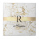 Personnalisez votre nom en script noir et monogramme noir sur la barre or tendance sur Marbre blanc et or. Cliquez sur "Personnaliser" pour modifier les couleurs et les styles de type