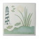 This whimsical coastal ceramic tile has a child-like simplicity that gives it an irresistible charm. Featuring aquatic plant fronds, simplistic fish shapes and a striped lighthouse overlooked by a muted sun. The flowing, hand-painted effect in shades of green and soft buttery yellow creates a sense of movement, while the watery texture adds depth and a calm, ocean-inspired atmosphere. A beautiful accent piece for beach-inspired interiors and serene seaside spaces. Note: design may contain generative content