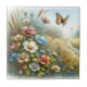 This artwork captures a peaceful wildflower meadow brought to life with soft watercolor textures and gentle, flowing detail. A winding stream leads the eye through tall grasses and blooming flowers in blush pinks, creamy whites, and calming blues, while butterflies drift quietly through the scene. The overall mood is light, airy, and soothing, making this design ideal for anyone who loves nature-inspired decor with a romantic, storybook feel.