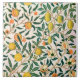 Un motif botanique vintage sans couture avec des citrons, des oranges, des pêches et des fleurs épanouies entrelacés avec des feuilles vertes détaillées et des branches sur un fond pastel doux.