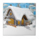 Rendu numérique 3D d'un chalet de Noël sous la neige dans une forêt d'hiver, arrière - plan de ciel bleu, effet de peinture