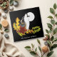 Un loup hurle à la pleine lune avec des feuilles d'automne et des glands sur fond de noir.