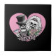 Les crânes de mariée et de mariée sont habillés dans leur meilleur mariage avec un texte JUST MARRIED.