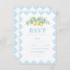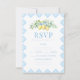 Explorez le romantisme classique avec nos cartes de réponse RSVP conçues pour les mariages méditerranéens italiens. Décoré d'un cadre magnifique de tuiles bleues et de branches de citron jaune décoré de fleurs bleues blanches. Un script de calligraphie minimaliste simple ajoute une touche de sophistication à la conception.