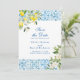 Annoncez vos prochains noces avec une touche de charme italien en utilisant nos carreaux italiens bleus et la carte "Save The Date" au citron. Cette carte charmante capture l'essence de la Méditerranée avec son motif classique de carreaux bleus, rappelant les belles façades que l'on trouve dans les villages italiens. Ornée de citrons et de fleurs de citron vibrants, cette conception dégage de la chaleur et de la sophistication, donnant le ton parfait pour votre célébration de mariage.