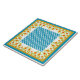 Un joli carrelage en céramique, avec une bordure de fleurs de Pot Marigold sur un arrière - plan blanc aux Pois bleus et blancs. Une partie de la collection Posh & Painterly 'Marigold Medley'. Ajoutez un cadre en bois pour faire un trivet.