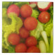 Cette magnifique tuile présente une photographie d'un mélange d'ingrédients de salade dans une passoire. La photo savoureuse comprend des tomates, des radis, des oignons de printemps et des laitues.