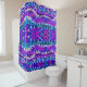 Voici un beau rideau de douche avec un magnifique motif en mosaïque dans les tons violet, rose, bleu, turquoise et blanc.