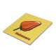 Un poivre orange habanero est décoré de motifs inspirés par des motifs de tuiles de béton cubain et est posé sur un arrière - plan jaune avec une version plus petite du même motif et un étiquette script dans le coin. Ce poivre très épicé a été cultivé à l'origine dans la péninsule du Yucatan, mais il tire son nom de La Havane à Cuba en raison du commerce dense à travers cette ville.