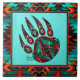Éclairez votre maison avec ce carrelage en céramique "One of a Kind" Tribal Bear Paw ! Il comprend une patte d'ours tribale amérindienne sur un Arrière - plan Turquoise...Entouré d'une frontière sud-ouest en Turquoise, Orange & Noir!