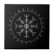 Carreau en céramique de runes Aegishjalmr. Les runes Aegishjalmr sont un motif germanique créé par Anna M. Asbury et se composent d'un fond noir avec un Aegishjalmr au centre, entouré des runes Elder Futhark.