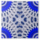 Dentelle blanche sur un arrière - plan bleu avec un effet 3D. 4 tuiles se connectent pour former un cercle.