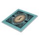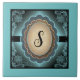 Personnalisez cette unique dentelle Turquoise "One of a Kind" et Carrelage en céramique Monogramme noir ! Il présente une élégante dentelle d'antiquité turquoise et un ovale décoratif bronzé sur un Arrière - plan noir et turquoise mélangé ! Design artistique original par Kerry Miller.