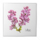 Lilac fleurit violet et blanc. Texte dans le script : "Lilac" dans le coin inférieur droit.