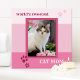 Un carreau super mignon avec une photo de votre chaton préféré encadré par un motif rayé rose avec des empreintes de pattes de chat et vos propres textes personnalisés.