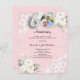 Pour un 60e anniversaire de mariage élégant et romantique. Arrière - plan de couleur rose vif décoré de fleurs blanches, de roses, de faux diamants et de dentelle blanche. Personnalisez et ajoutez votre photo, vos noms et vos détails. 1 feuille = 1 invite imprimé bord à bord.