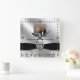 A Digitalbcon Images Design avec un satin noir et platine couleur argentée et un thème de design florissant avec une variété d'images, formes, motifs, styles et polices personnalisés dans ce "Diamond Mariage Anniversary Design" Photo Carré Horloge murale. Ce design attrayant et élégant est complété par des textes personnalisables qui s'adaptent à vos propres occasions mémorables. Chérissez les souvenirs de votre fête et des années de plaisir avec cette horloge murale carré spécialement conçue.