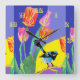 Carrée Aquarelle bleu Wren Oiseaux Enfants Horloge de la