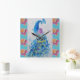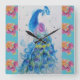 Carrée Aquarelle Peacock Blue Bird Aqua Rose Horloge