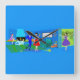 Cette horloge atomique Palm Springs Cocktail Party Acryllique est une sophistication kitsch à son plus fabuleux! Le style des années 1960, minimaliste design d'art, dispose d'une cheminée en pierre moderne du milieu du siècle à l'ombre de bleu qui s'harmonise parfaitement avec le cobalt lumineux du reste du salon. On y découvre une vue spectaculaire sur le jardin tropical grâce aux portes coulissantes en verre. La salle est décorée à la hauteur de l'espace, avec de l'art moderne, des appliques en cône, une table ronde orange à deux étages et un tapis rayé vert olive. Les hommes et les femmes glamour sirotent leurs martinis oranges. L'homme en costume bleu vif avec une cravate à arc anime les choses en ôtant l'ombre en fibre de verre de la lampe et en le plaçant sur sa tête à l'amusement des autres invités. Maintenant, c'est une fête !