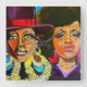 Vous recherchez un cadeau unique ? Cette horloge funky avec Black Queen, Jill Scott et Afro Queen, Ereka Badu ajoutera un peu de flair à n'importe quelle chambre. Tante Karen présente l'artiste émergente Valencia Goodwin. L'original "Badu vs Scott" a été inspiré par le populaire programme TV "VERSUS Battle". Une partie du produit profite à la Fondation Tante Karen. Description originale : Moyen : Moyen : Acrylique sur toile Dimensions : 48po. x 60po.