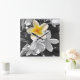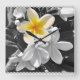 Carrée Blanc Noir Avec Un Frangipani Jaune, Horloge Mur