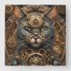 Carrée bleu steampunk chat AI art Carré Mur Horloge