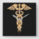 Carrée Caduceus Black and Gold Wall Horloge