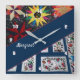 Une horloge Quilts of Flowers and Stars est conçu à partir de 2 courtepointes faites à la main l'une des étoiles et l'autre des fleurs avec une bordure bleue. Un design magnifique qui séduira tous les couchettes. Un superbe décor mural pour toute salle de couture ou boutique artisanale. Ferait un grand cadeau pour n'importe quel couette ou égout. L'horloge peut être personnalisée en changeant le nom "Margaret" en un autre nom pour le rendre spécial.