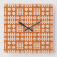 Une horloge murale Carré chic, avec un motif de motifs traditionnels de tapisserie galloise en blanc sur un arrière - plan rouge brique. Ce motif conviendra à toutes les tailles d'horloge.