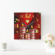 Trois bougies rouges et argentées contre un arrière - plan rouge de Noël aux numéros dorés.