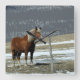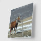 Cheval Belge À Paddock, Horloge Murale. Art numérique. Un cheval belge en paddock d'hiver derrière une clôture de barbelés. S'intègre bien dans la décoration de ferme ou de ranch. Entièrement personnalisable ; ajoutez vos propres numéros, ou laissez-les tels quels.