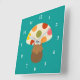 Carrée Cute champignons colorés grande horloge