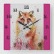 Carrée Cute Red Fox Aquarelle Enfants Chambre Horloge