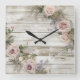 Carrée Élégante horloge de mur de Rose de fleurs rustique