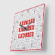 Besoin d'une excuse rapide ? Ne regarde pas plus loin.. Une horloge murale légère avec une gamme complète d'excuses pour chaque occasion. Quelque chose à lire et à vous faire sourire. Un cadeau parfait pour ceux qui courent toujours en retard! Écriture en noir et rouge sur un arrière - plan blanc.