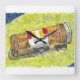 Cette horloge murale est imprimée avec une image de ma monoempreinte aquarelle "Big Pill Bottle", 2020. Le processus de monoempreinte aquarelle est amusant. Je peins des aquarelles sur une plaque de verre spécialement traitée, puis j'y presse du papier humide avec un outil d'impression à la main japonais traditionnel, généralement utilisé pour les impressions de coupe à bois.