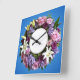 Apportez une touche de printemps dans votre chambre avec cette horloge de couronne florale sur votre mur...c'est toujours le printemps. La couronne est composée de plusieurs sortes de fleurs différentes et la couleur de l'arrière - plan peut être changée pour correspondre exactement à votre décor.