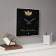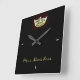 Choisissez entre les styles ronds ou carrés de cette horloge magnifique et élégante avec de jolis détails et image de couronne avec le texte pour vous customiser avec le nom ou titre de concours. Couronne noire et jaune seulement.
